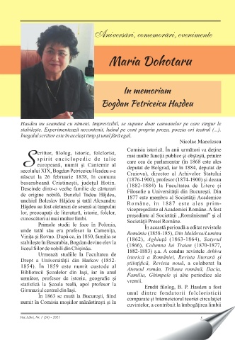 Aniversari, comemorari, evenimente , , Maria Dohotaru In memoriam Bogdan Petriceicu Hasdeu Vox Libri, Nr. 1 (58) - 2021 5