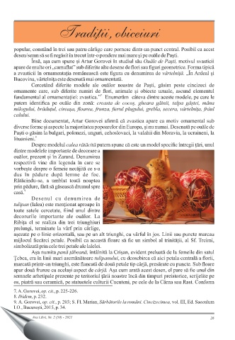 Traditii, obiceiuri , 7. A. Gorovei, op. cit., p. 225-226. 8. Ibidem, p. 232. 9. A. Gorovei, op. cit., p. 203; S. Fl. Marian, Sărbătorile la români. Cincizecimea, vol. III, Ed. Saeculum I.O., București, 2015, p. 34. Vox Libri, Nr. 2 (59) - 2021 26