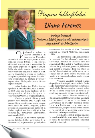 Invitație la lectură - „O istorie a Bibliei: povestea celei mai importante cărți a lumii” de John Barton Vox Libri, Nr. 2 (59) - 2021 72