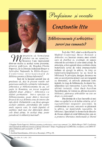 Constantin Ittu Biblioteconomia şi arhivistica: surori sau cumnate? Vox Libri, Nr. 3 (60) - 2021 68