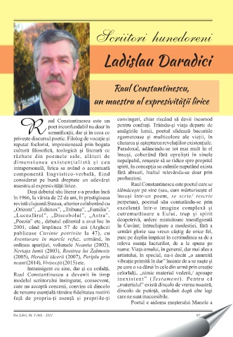 Scriitori hunedoreni Ladislau Daradici Raul Constantinescu, un maestru al expresivității lirice Vox Libri, Nr. 3 (60) - 2021 85