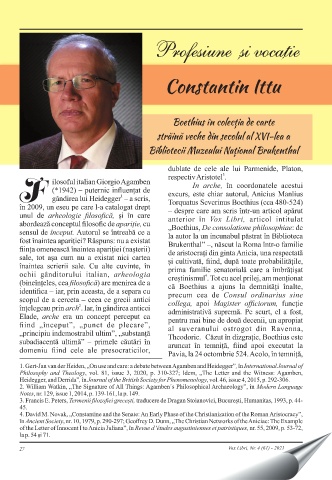 Boethius în colecția de carte străină veche din secolul al XVI-lea a Bibliotecii Muzeului Național Brukenthal 27 Vox Libri, Nr. 4 (61) - 2021