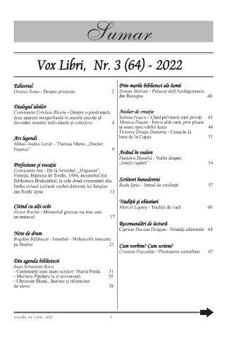 Sumar , , Vox Libri, Nr. 3 (64) - 2022 1