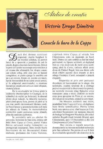 Atelier de creatie , Victoria Dragu Dimitriu Cenaclu la bara de la Capșa Vox Libri, Nr. 3 (64) - 2022 51
