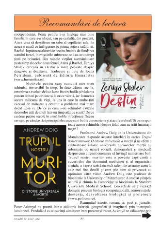 Recomandari de lectura Vox Libri, Nr. 1 (66) - 2023 89