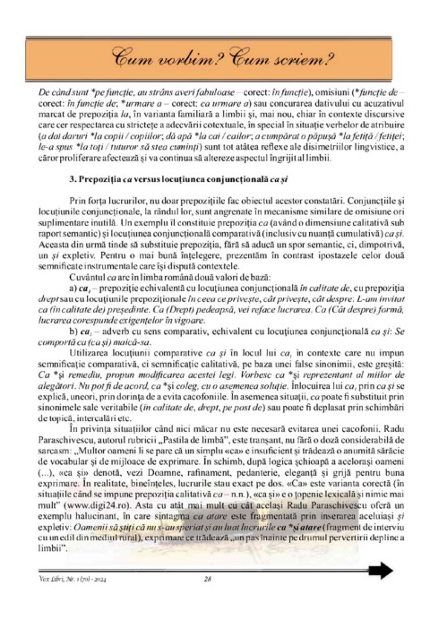 3. Prepoziția ca versus locuțiunea conjuncțională cașz