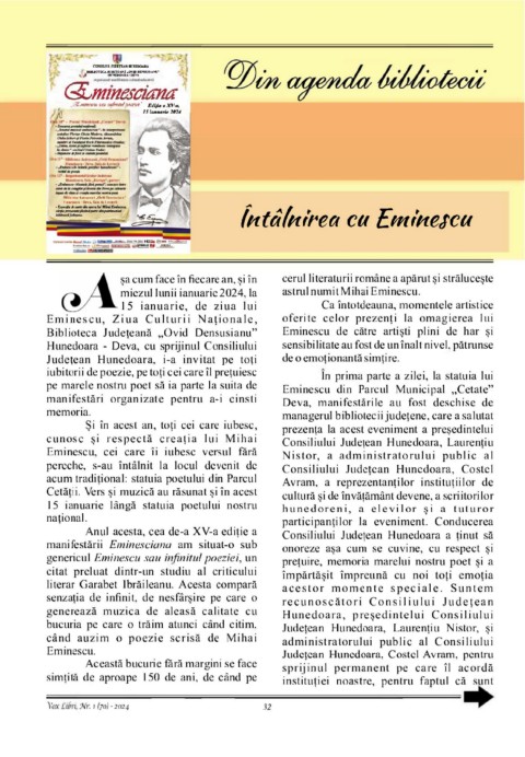 Eminescu. Județean Hunedoara, Costel Avram, pentru