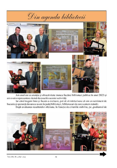 bucurie și speranță deoarece avem în județ biblioteci, bibliotecari de care suntem mândri.