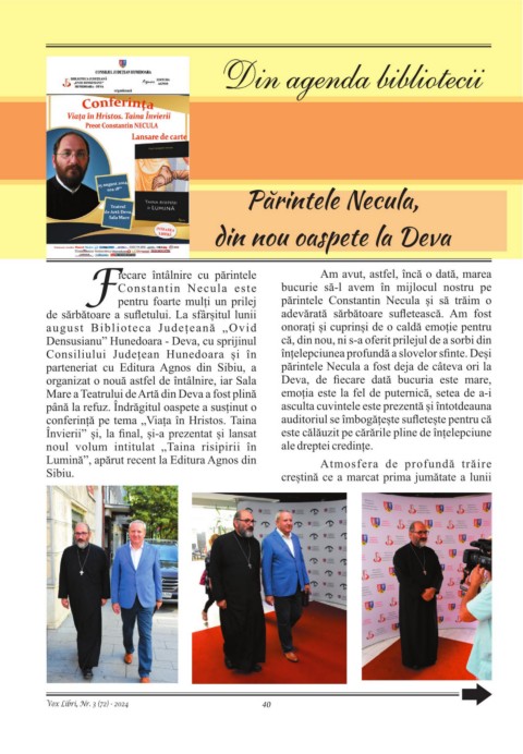 parteneriat cu Editura Agnos din Sibiu, a părintele Necula a fost deja de câteva ori la