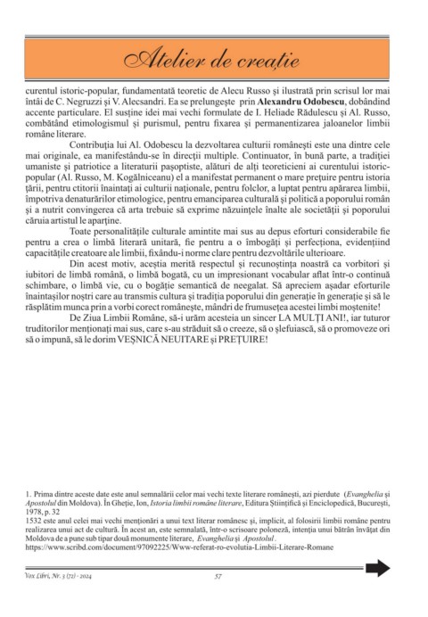 combătând etimologismul și purismul, pentru fixarea și permanentizarea jaloanelor limbii