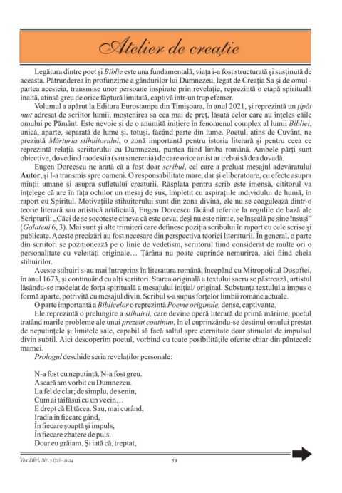 raport cu Spiritul. Motivațiile stihuitorului sunt din zona divină, ele nu se coagulează dintr-o
