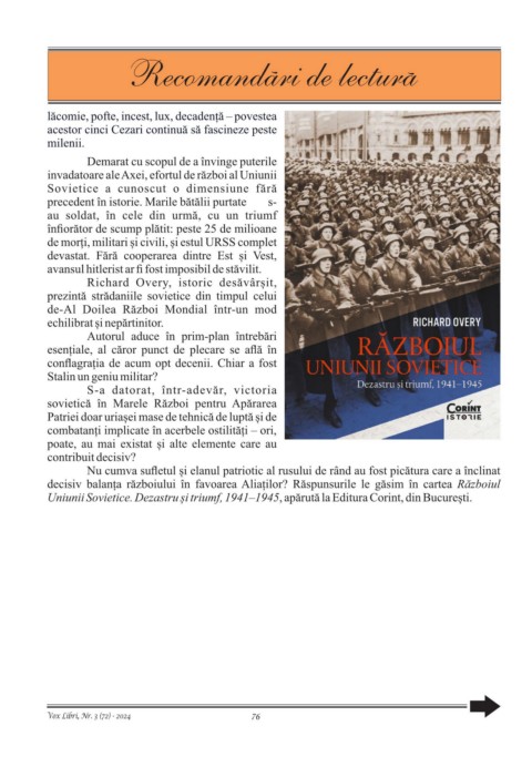 Uniunii Sovietice. Dezastru și triumf, 1941–1945, apărută la Editura Corint, din București.