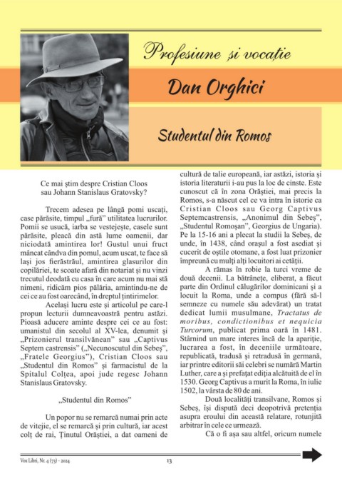 „Fratele Georgius”), Cristian Cloos sau republicată, tradusă şi retradusă în germană,