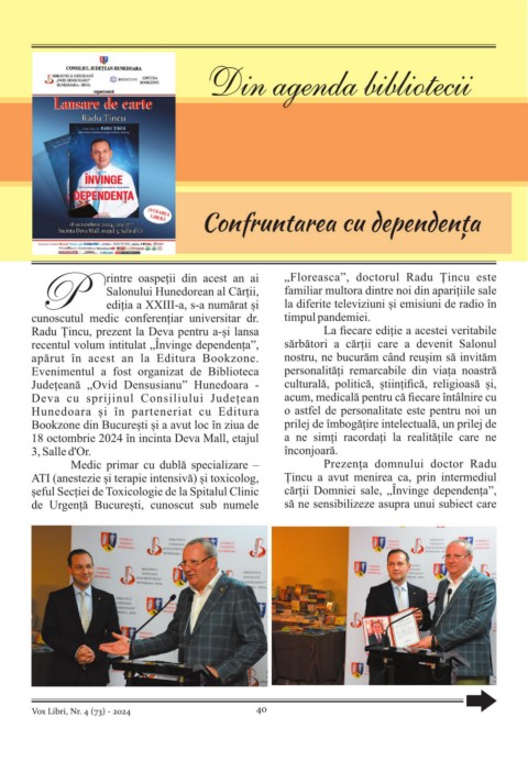 recentul volum intitulat „Învinge dependența”, sărbători a cărții care a devenit Salonul