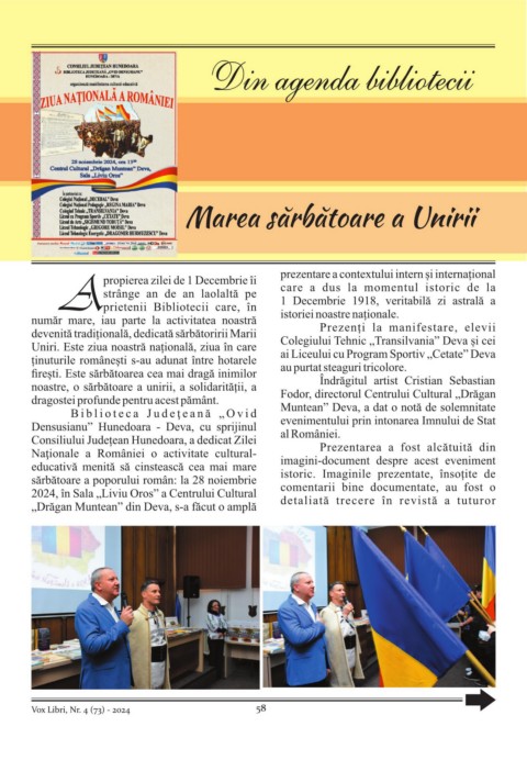 B i b l i o t e c a J u d e ţ e a n ă „ O v i d Muntean” Deva, a dat o notă de solemnitate
