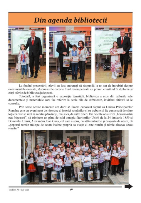 evenimentele evocate, răspunsurile corecte fiind recompensate cu premii constând în diplome și