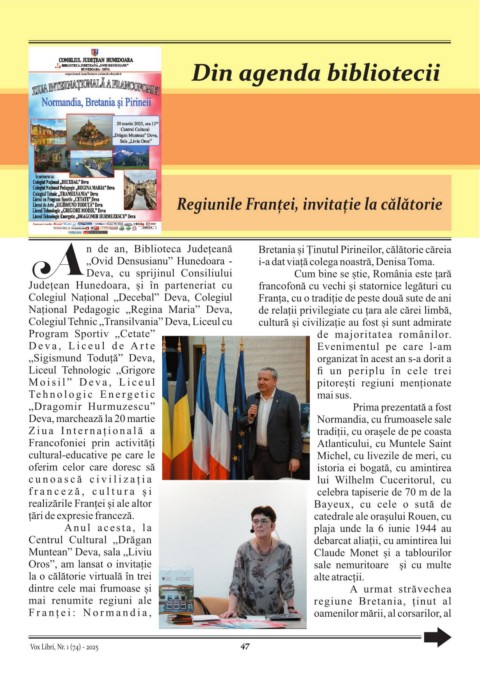Județean Hunedoara, și în parteneriat cu francofonă cu vechi și statornice legături cu