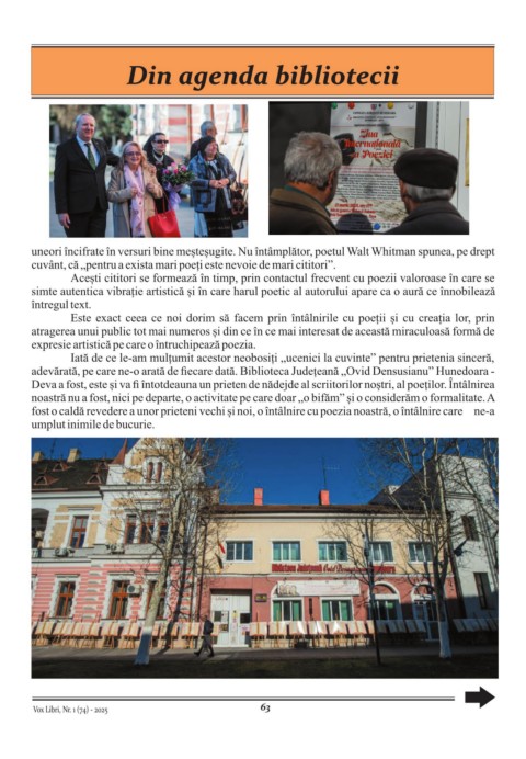 adevărată, pe care ne-o arată de fiecare dată. Biblioteca Județeană „Ovid Densusianu” Hunedoara -