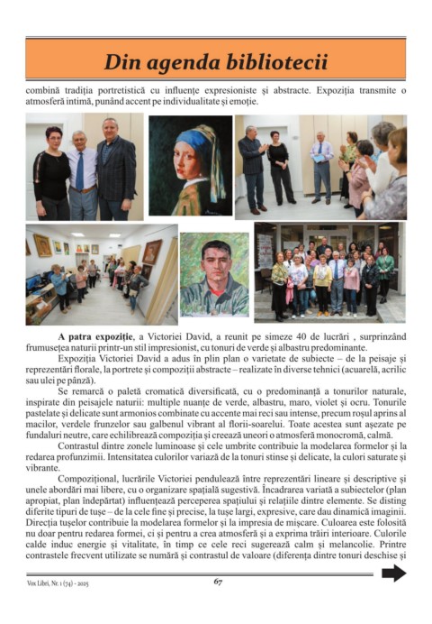 A patra expoziție, a Victoriei David, a reunit pe simeze 40 de lucrări , surprinzând