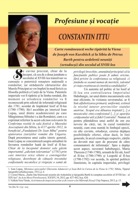 2. Cornel Maria, „Înalte fețe bisericești neunite ale Ardealului și tipografia Barth la cumpăna secolelor al XVIII-lea – al