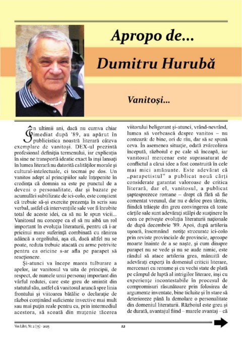 Vanitosul nu concepe ca el să nu aibă un rol ceea ce privește evoluția literaturii naționale