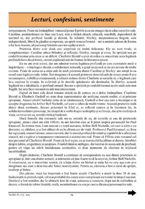 cealaltă tocmai prin ceea ce au diferit. Charlotte Bronte a știut să redea cu sinceritate acea legătură