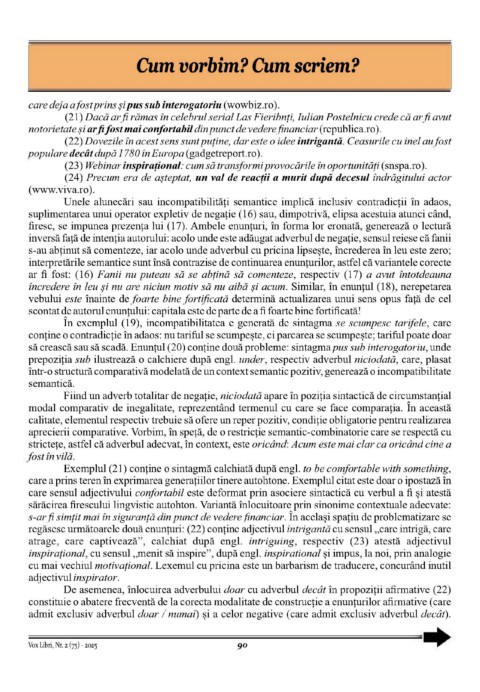 firesc, se impunea prezența lui (17). Ambele enunțuri, în forma lor eronată, generează o lectură