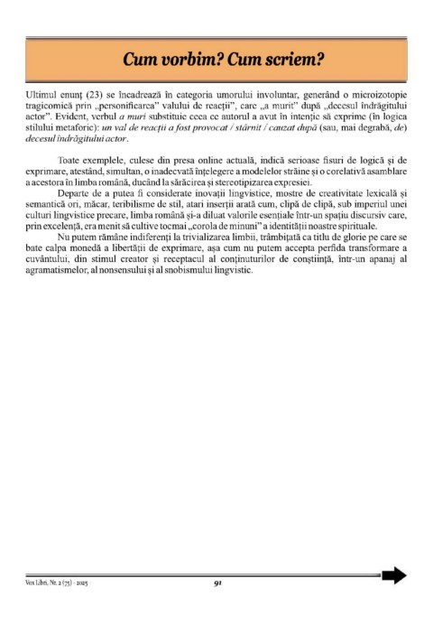 culturi lingvistice precare, limba română și-a diluat valorile esențiale într-un spațiu discursiv care,