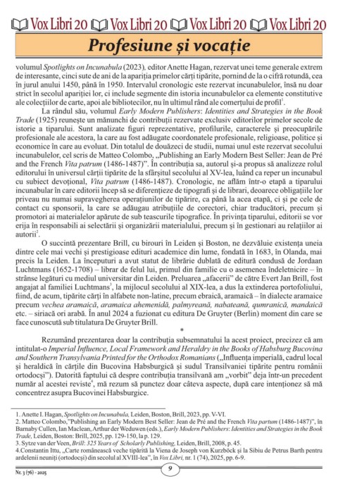 ardelenii neuniți (ortodocși) din secolul al XVIII-lea”, în Vox Libri, nr. 1 (74), 2025, pp. 6-9.