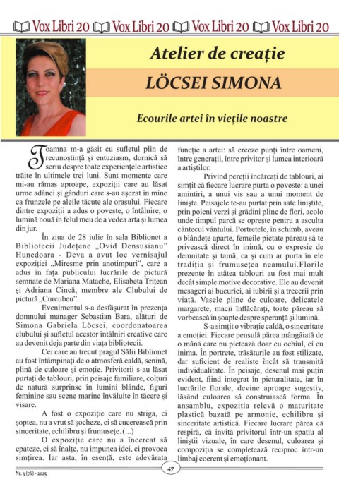 Simona Gabriela Löcsei, coordonatoarea S-a simțit o vibrație caldă, o sinceritate