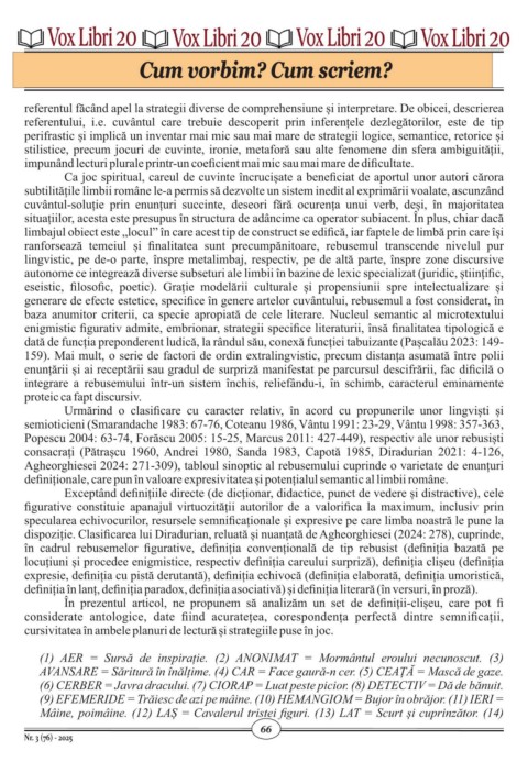definiționale, care pun în valoare expresivitatea și potențialul semantic al limbii române.