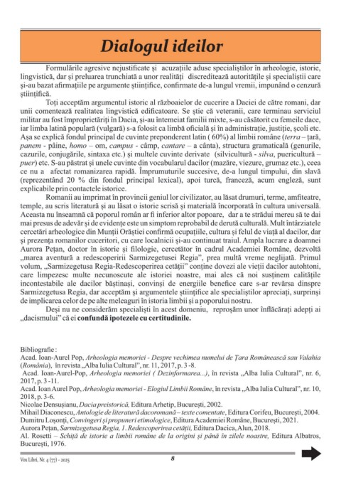 Acad. Ioan Aurel Pop, Arheologia memoriei - Elogiul Limbii Române, în revista „Alba Iulia Cultural”, nr. 10,