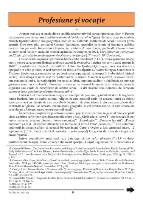 Brukenthal, 2024, pp. 343-344; pentru garshuni, Idem, Florilegiu bibliologic: peregrin cu incunabula von Brukenthal,