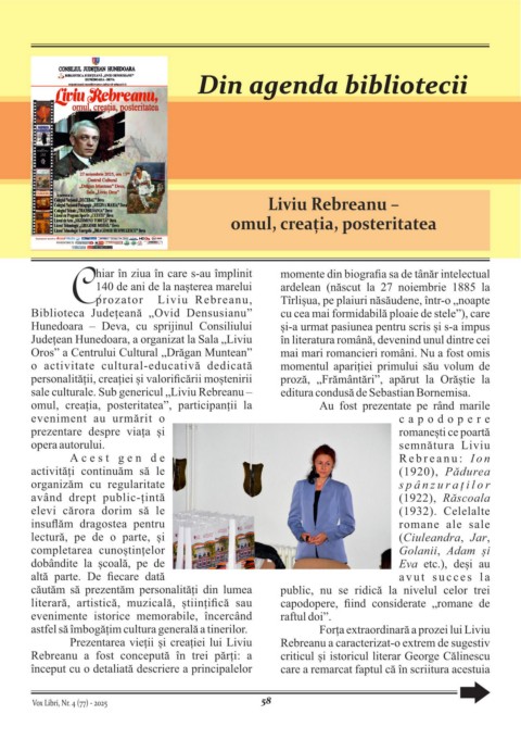 Județean Hunedoara, a organizat la Sala „Liviu în literatura română, devenind unul dintre cei