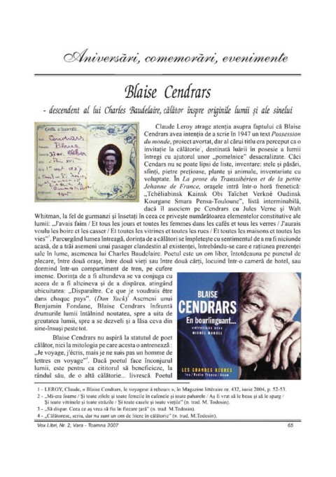 1 - LEROY, Claude, « Blaise Cendrars, le voyageur â rebours », în Magazine litteraire nr. 432, iunie 2004, p. 52-53.