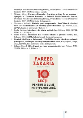 Zakaria, Fareed, 10 lecții pentru o lume postpandemică, Iași, Polirom, 2021,