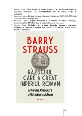 Cleopatra și Octavian la Actium, Iași, Polirom, 2022, 94/S90, Sala de lectură,