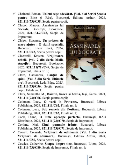 Distribuție, 2024, 821.111(73)/C70, Secția de împrumut;