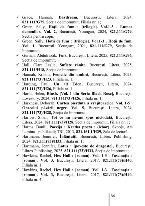 Litera, 2024, 821.111(73)/H28, Secția de împrumut, Filiala nr. 1;