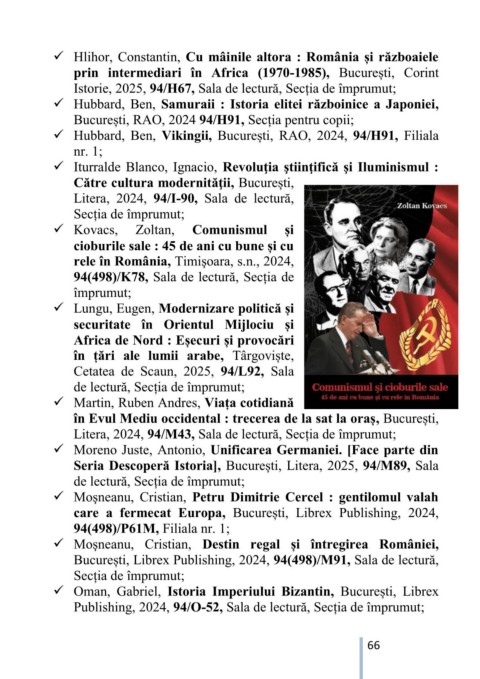 Istorie, 2025, 94/H67, Sala de lectură, Secția de împrumut;
